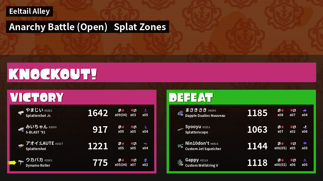 | Mode | Splat Zones - Anarchy Battle (Open) | ||