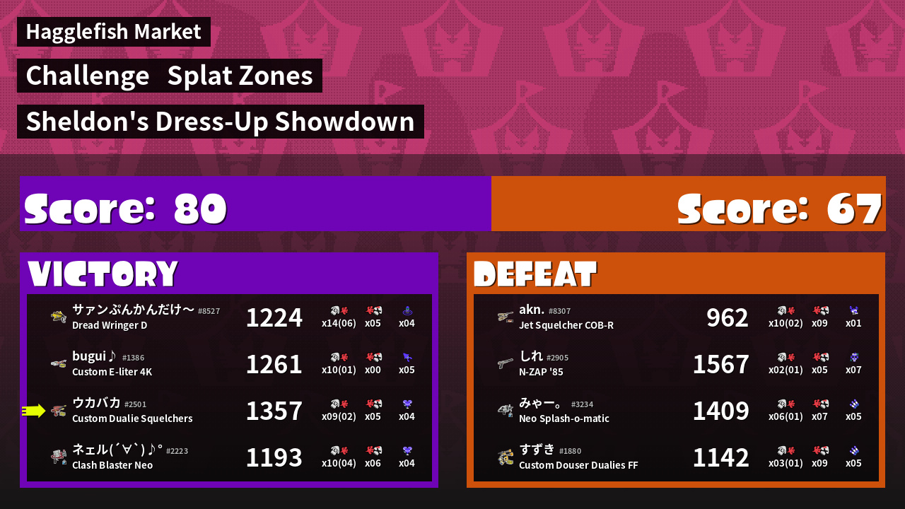 | Weapon | Custom Dualie Squelchers ( Super Chump) | ||