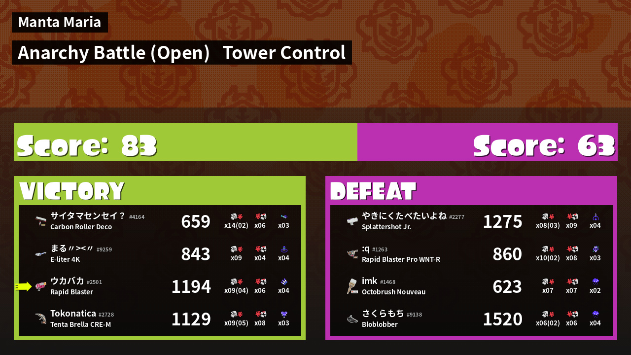 | Mode | Tower Control - Anarchy Battle (Open) | ||