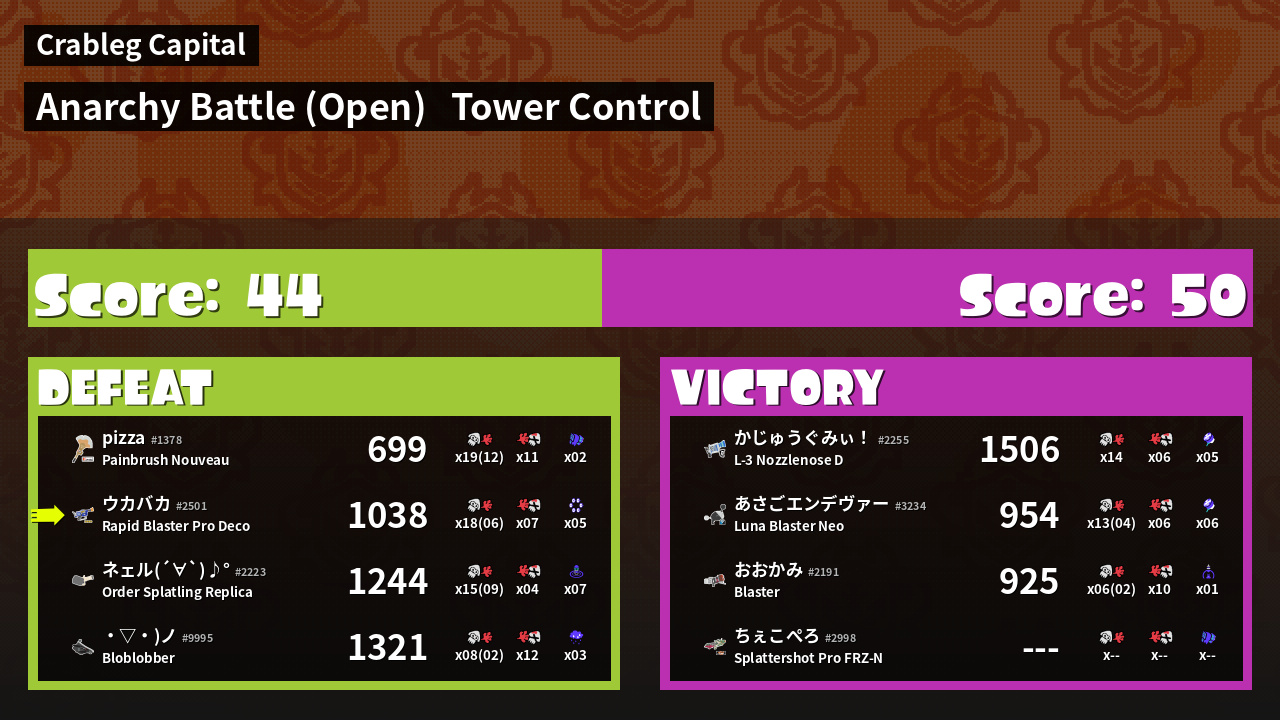| Mode | Tower Control - Anarchy Battle (Open) | ||