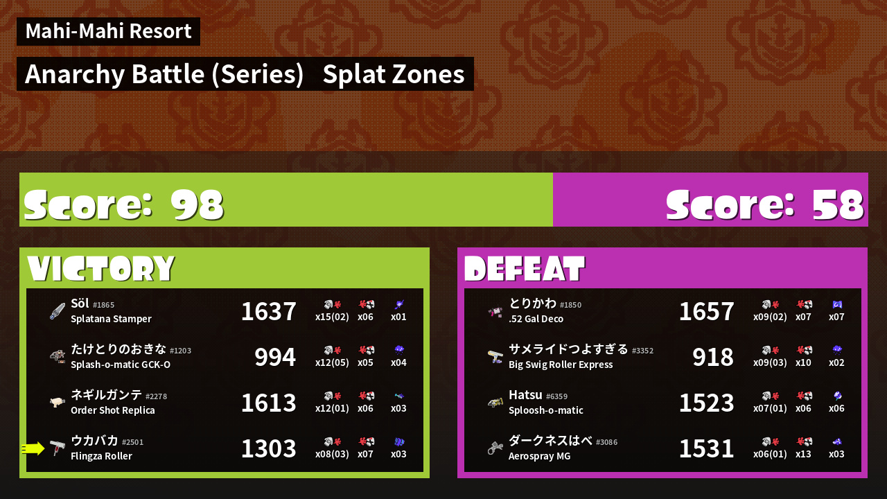 | Mode | Splat Zones - Anarchy Battle (Series) | ||