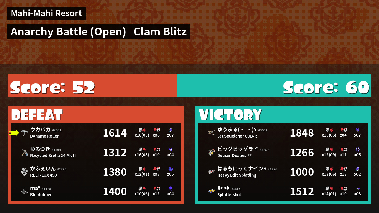 | Mode | Clam Blitz - Anarchy Battle (Open) | ||