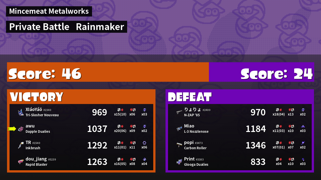 Kills / Deaths | 14 + 6 / 9 > Kill Ratio: 1.56 | ||