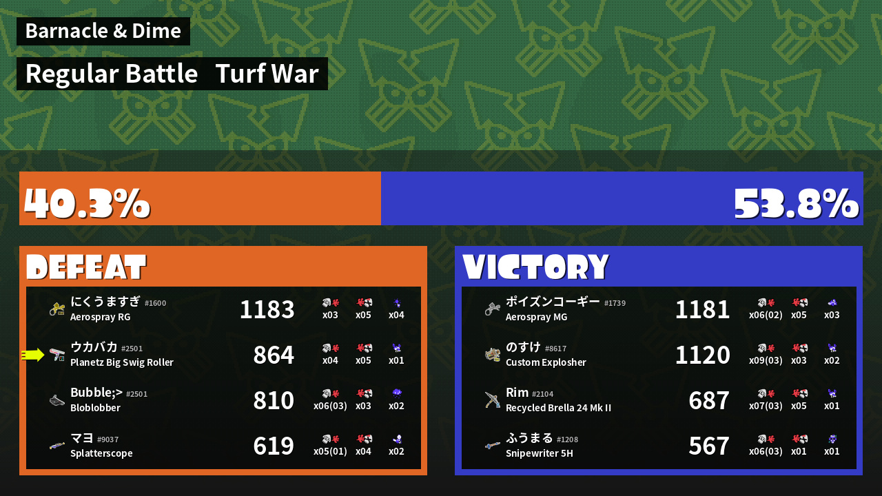 | Mode | Turf War - Regular Battle | ||