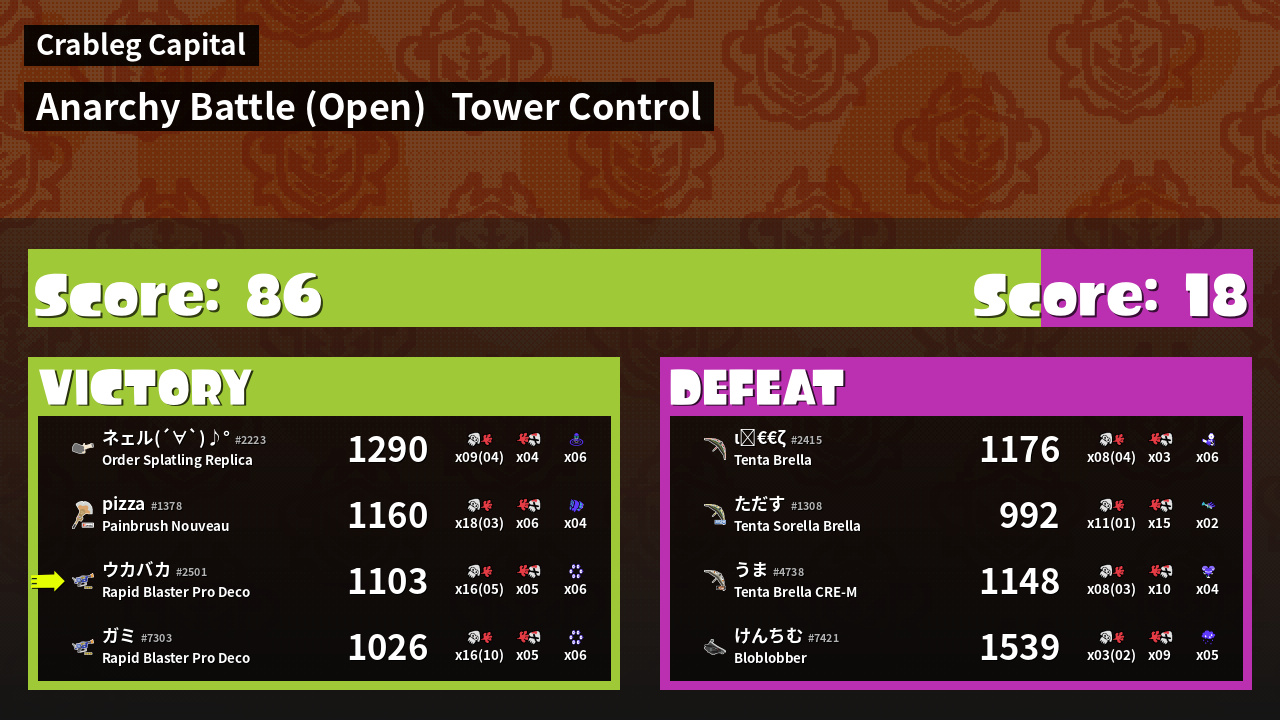 | Mode | Tower Control - Anarchy Battle (Open) | ||