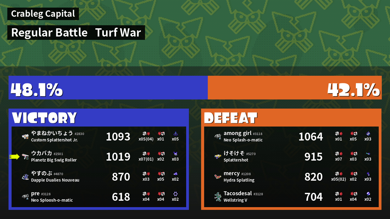 | Medals | #1 Overall Splatter #1 Popular Target #1 Enemy-Base Inker | ||
