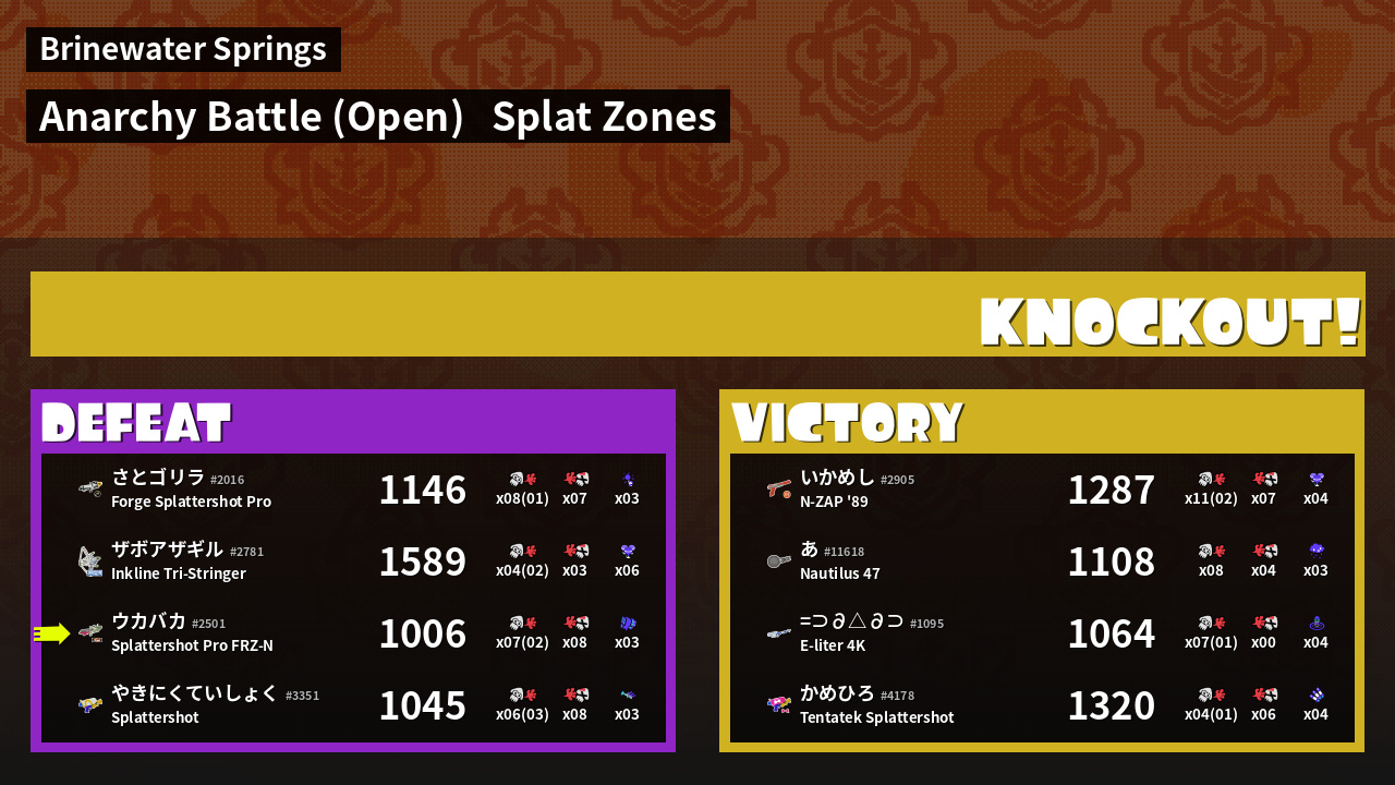 | Mode | Splat Zones - Anarchy Battle (Open) | ||