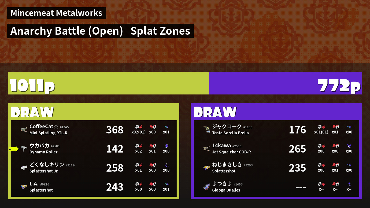 | Mode | Splat Zones - Anarchy Battle (Open) | ||