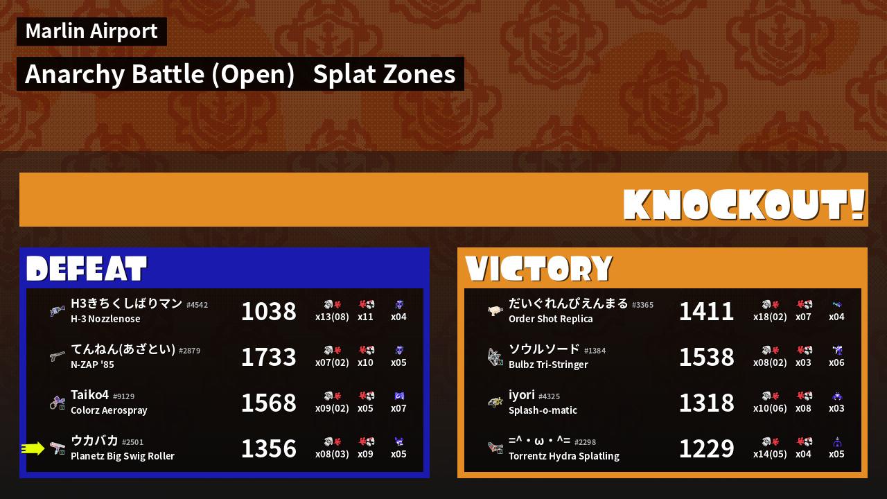 | Mode | Splat Zones - Anarchy Battle (Open) | ||