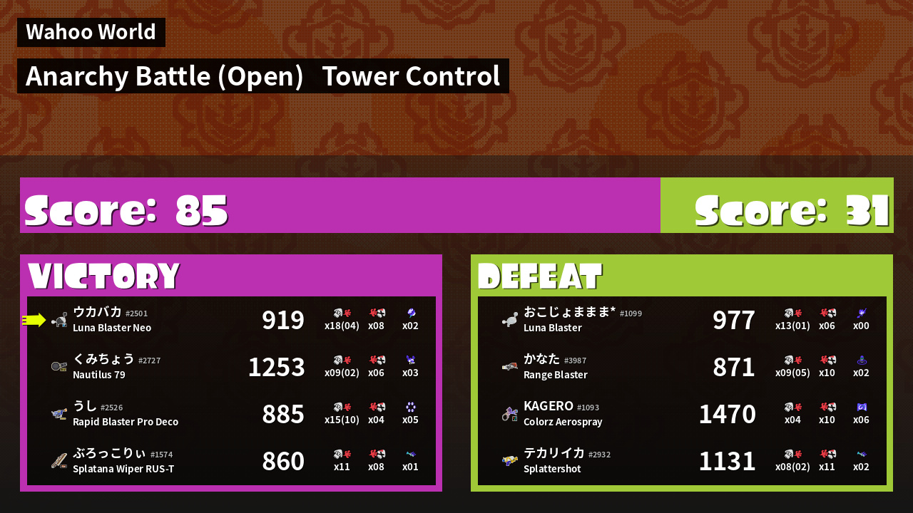 | Mode | Tower Control - Anarchy Battle (Open) | ||