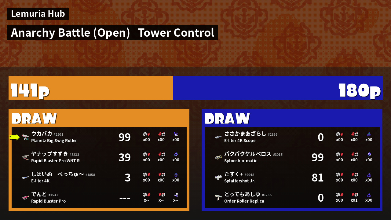 | Mode | Tower Control - Anarchy Battle (Open) | ||