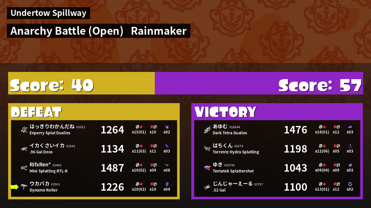 | Mode | Rainmaker - Anarchy Battle (Open) | ||