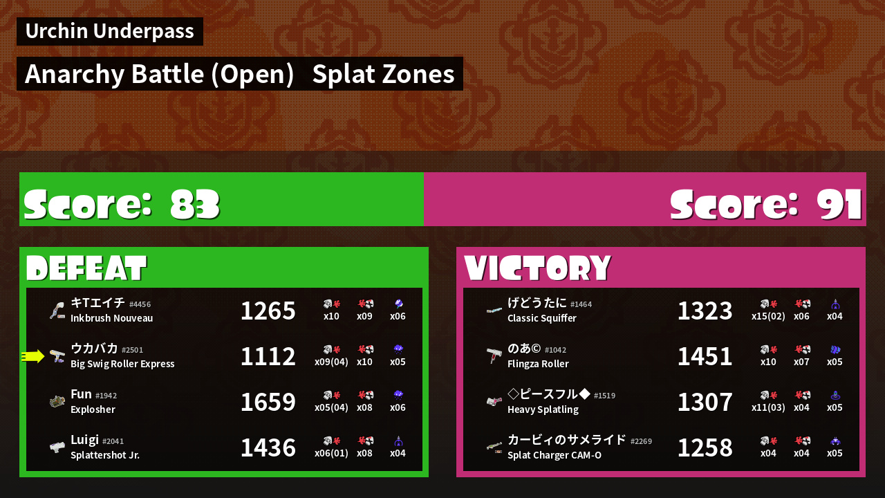 | Mode | Splat Zones - Anarchy Battle (Open) | ||