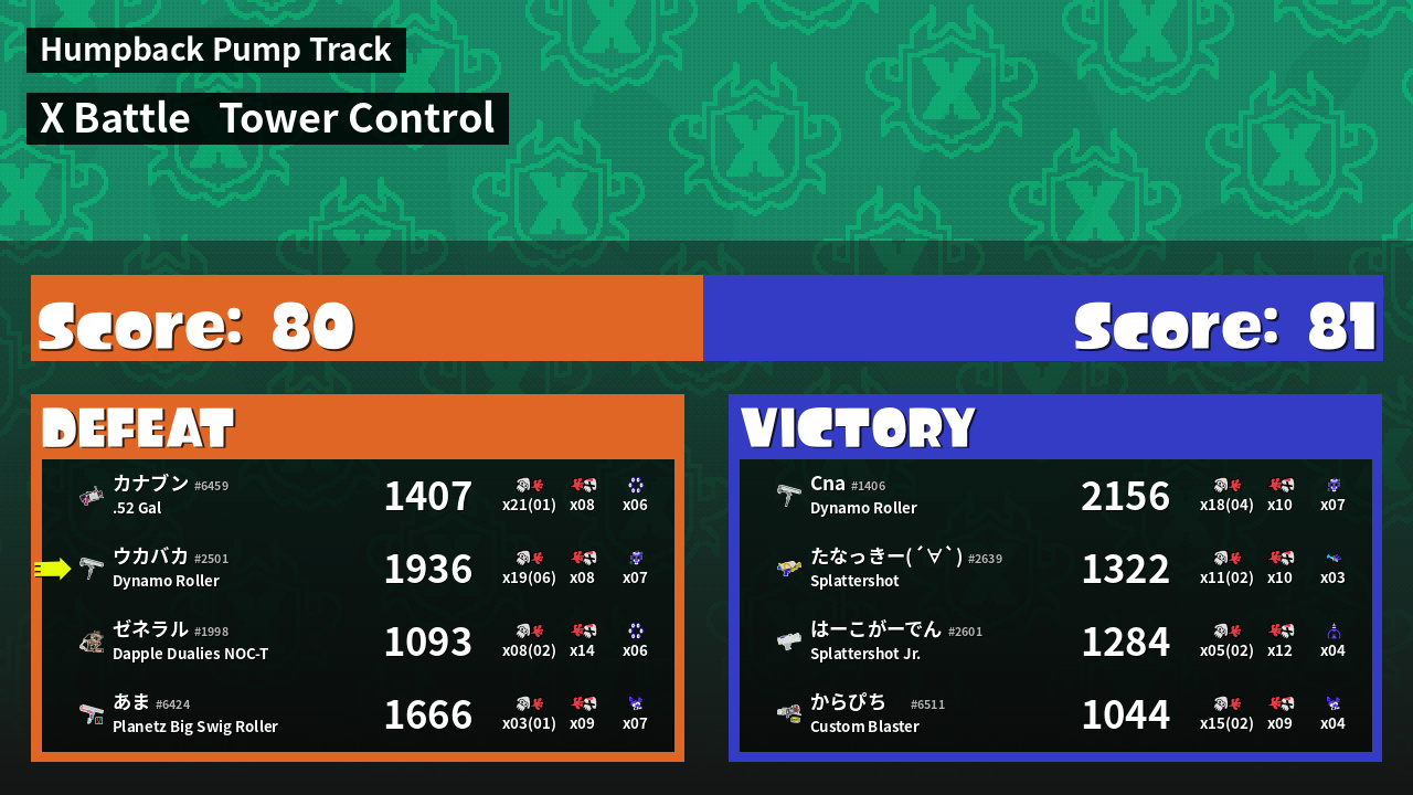| Mode | Tower Control - X Battle | ||