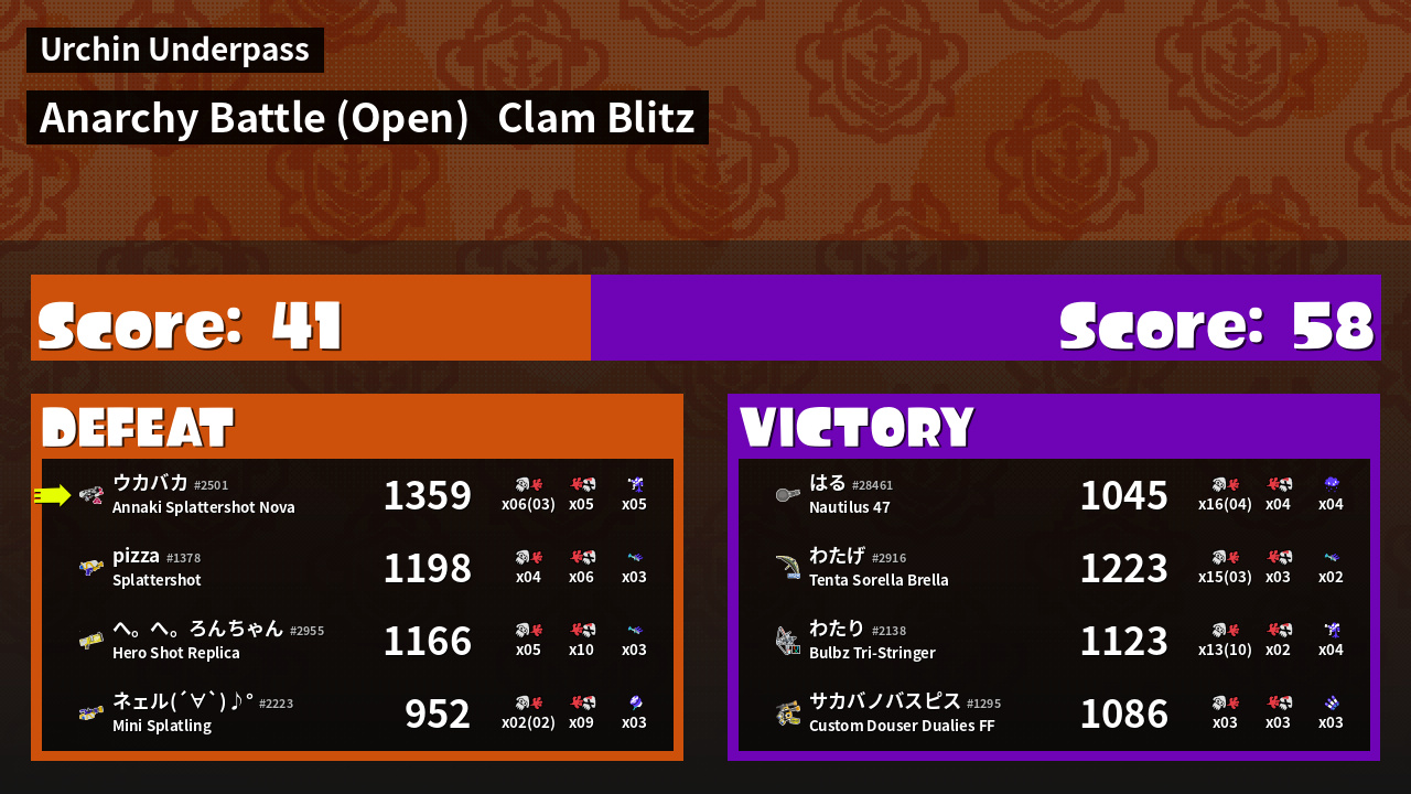 | Mode | Clam Blitz - Anarchy Battle (Open) | ||