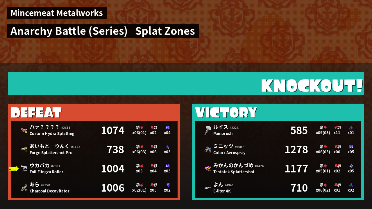 Name | Weapon | Inked | ![]() |