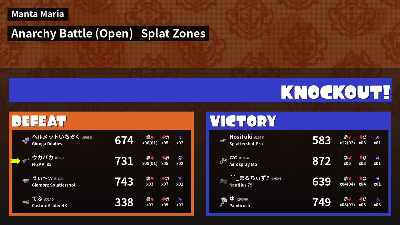 | Mode | Splat Zones - Anarchy Battle (Open) | ||