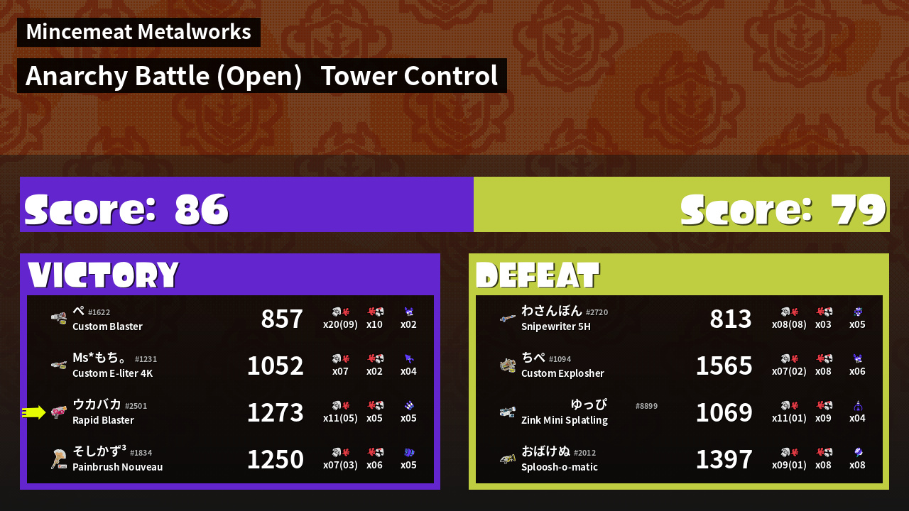 | Mode | Tower Control - Anarchy Battle (Open) | ||