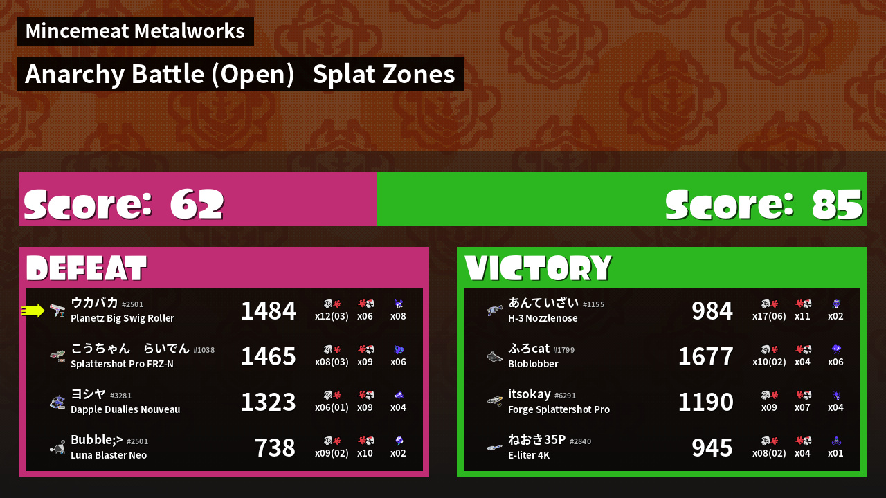 | Mode | Splat Zones - Anarchy Battle (Open) | ||