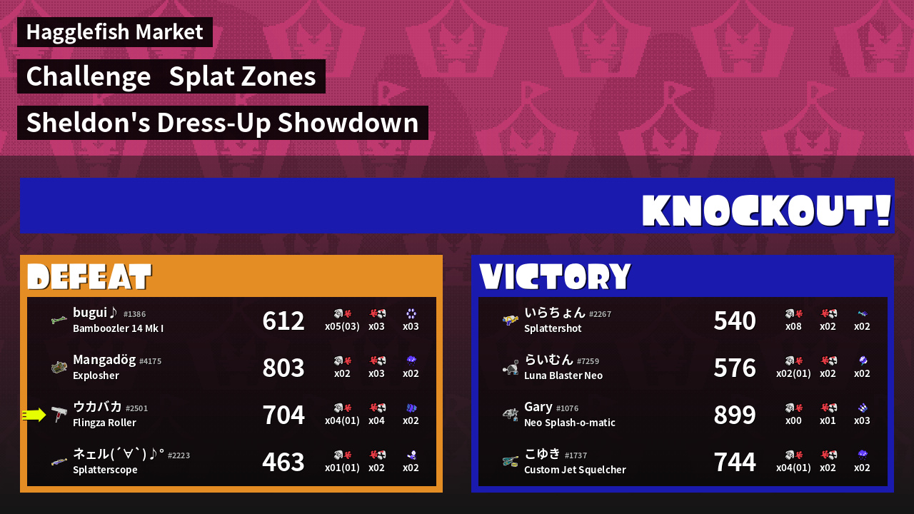 | Medals | #1 Enemy Splatter #1 Tenta Missiles User #2 Overall Splatter | ||
