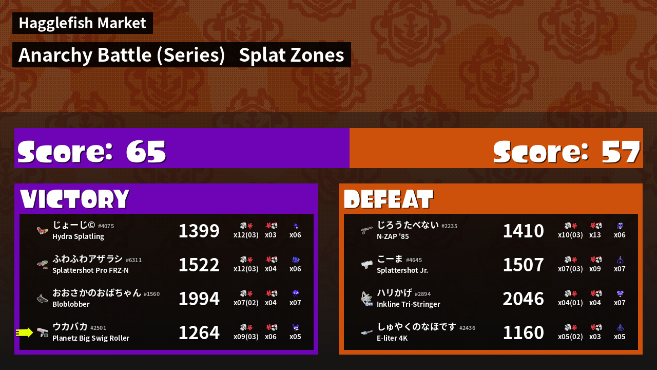 | Mode | Splat Zones - Anarchy Battle (Series) | ||