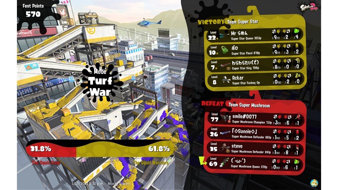 | Splatfest Title | Super Mushroom Queen → Super Mushroom Queen | ||||||||||||||||||||||||||||||||||||||||