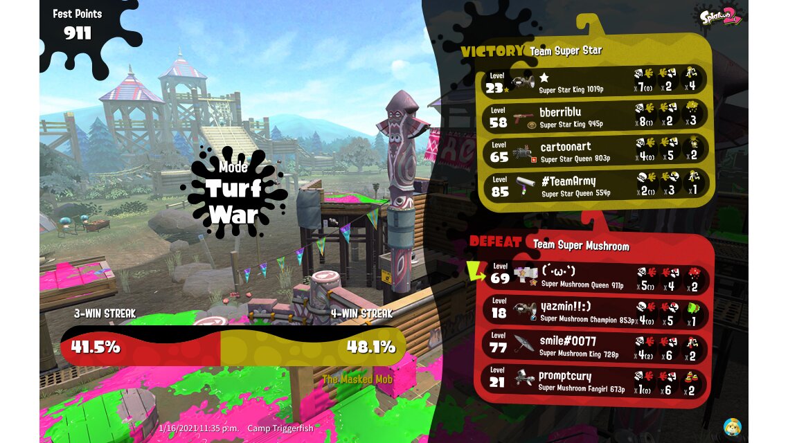 | Splatfest Title | Super Mushroom Queen → Super Mushroom Queen | ||||||||||||||||||||||||||||||||||||||||