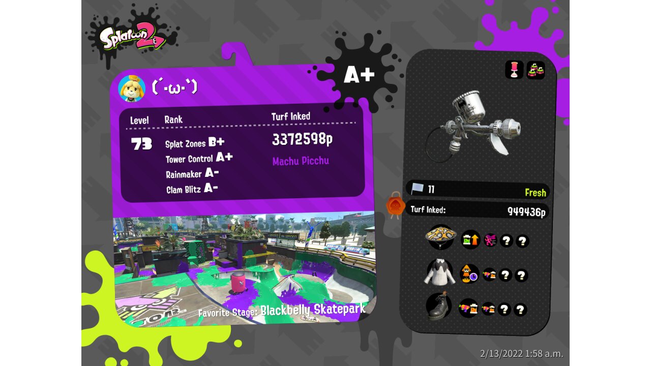| SplatNet Battle # | 3,750 | |||||||||||||||||||||||||||||||