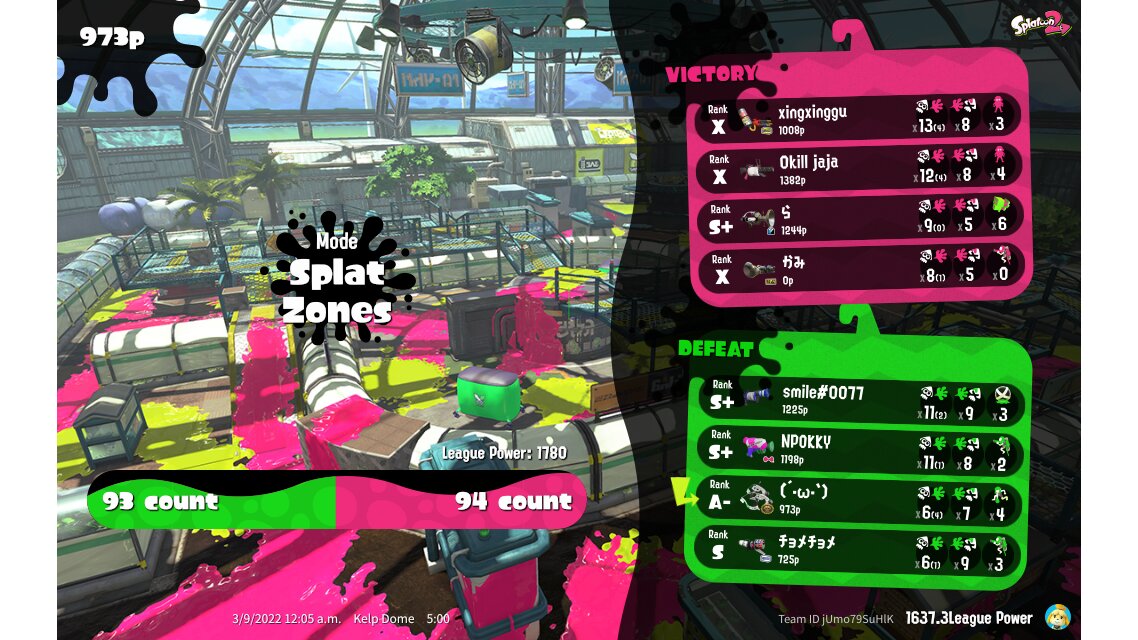| Mode | Splat Zones - League Battle (Twin) | ||||||||||||||||||||||||||||||||||||||||