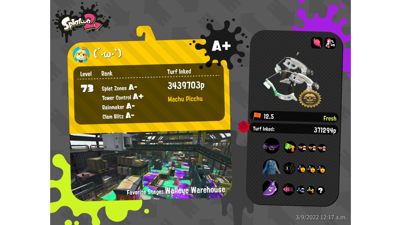| Name | Weapon | Level | Rank | Inked | k+a/sp | k/d |