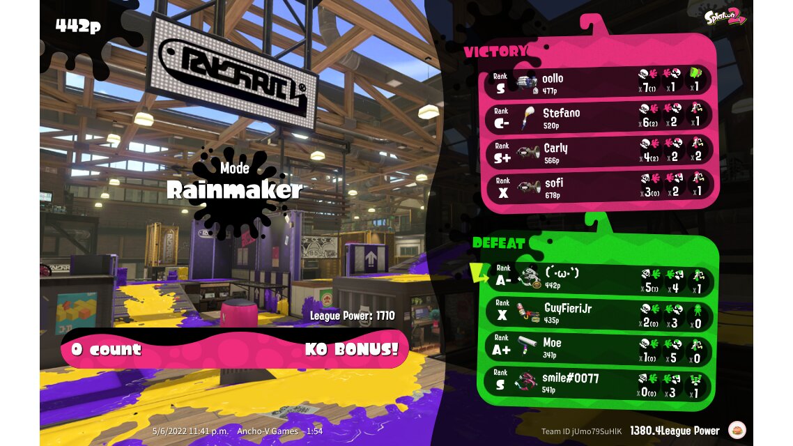 | Name | Weapon | Level | Rank | Inked | k+a/sp | k/d |