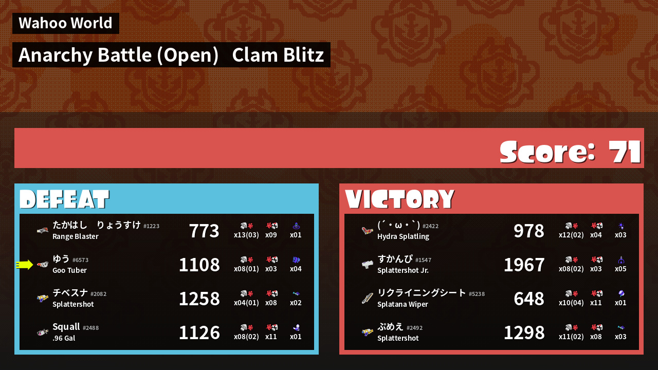 | Mode | Clam Blitz - Anarchy Battle (Open) | ||
