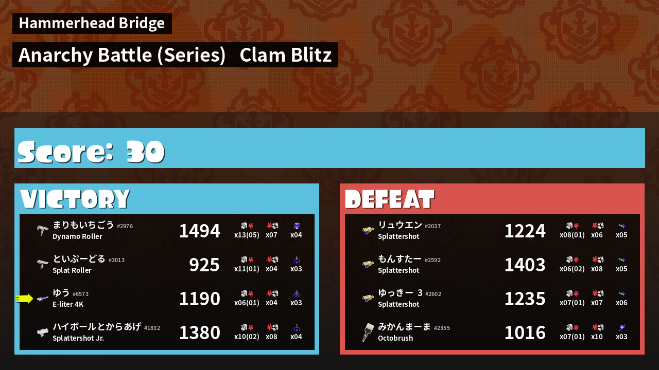 | Mode | Clam Blitz - Anarchy Battle (Series) | ||