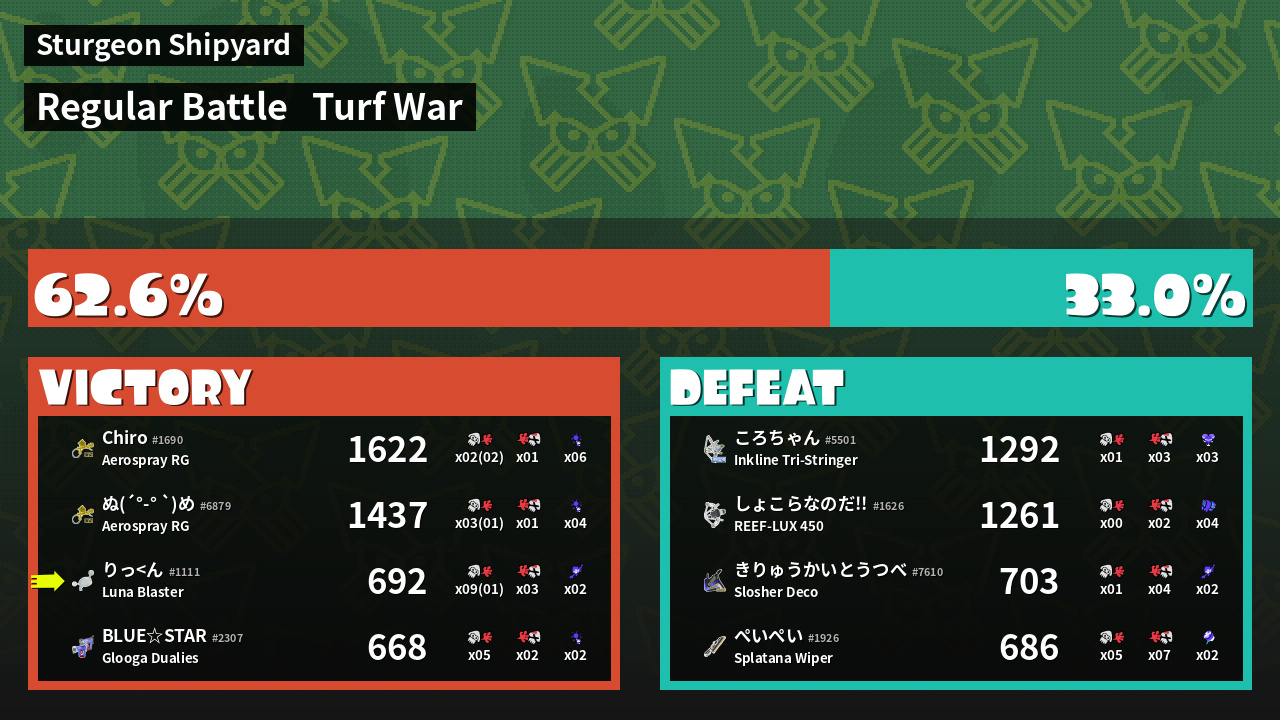 | Mode | Turf War - Regular Battle | ||