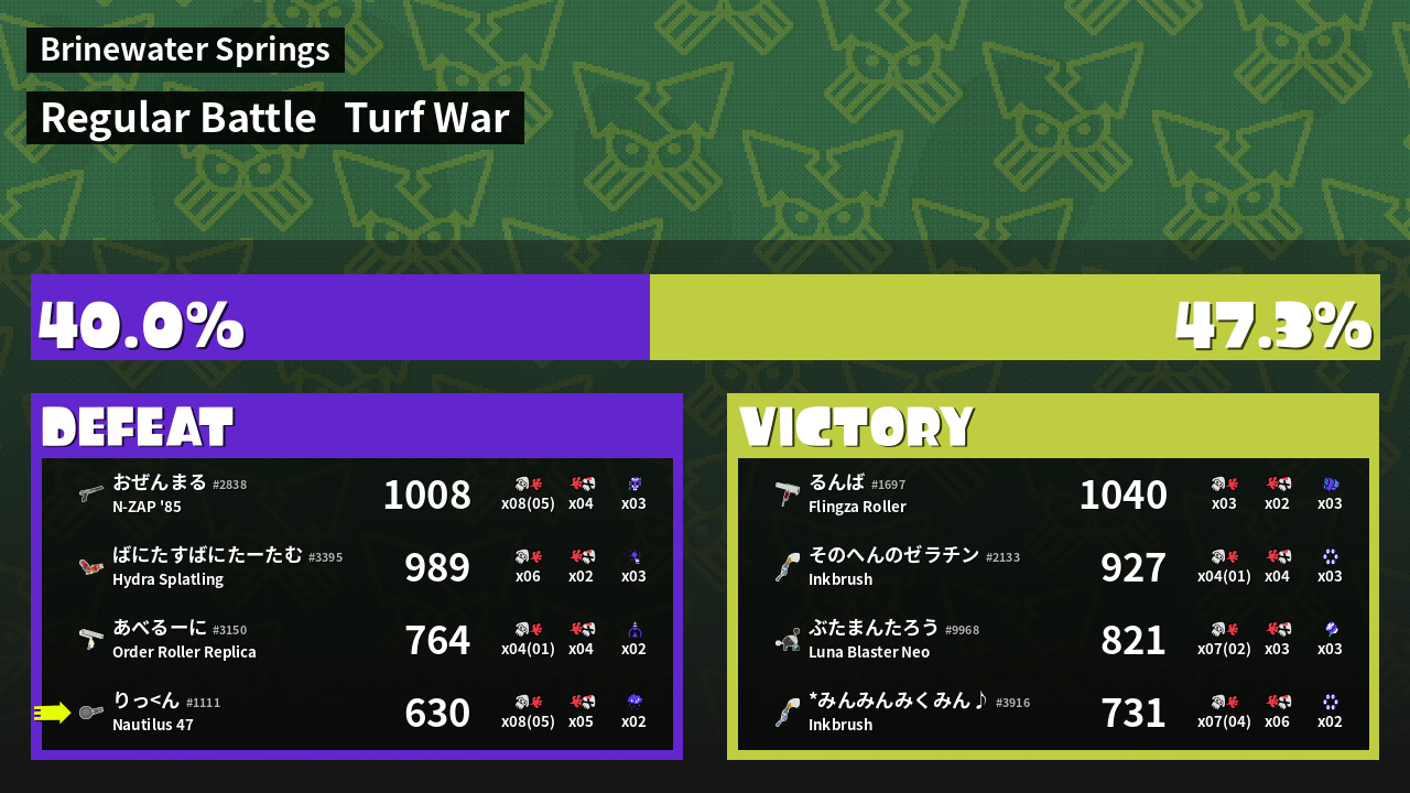 | Mode | Turf War - Regular Battle | ||