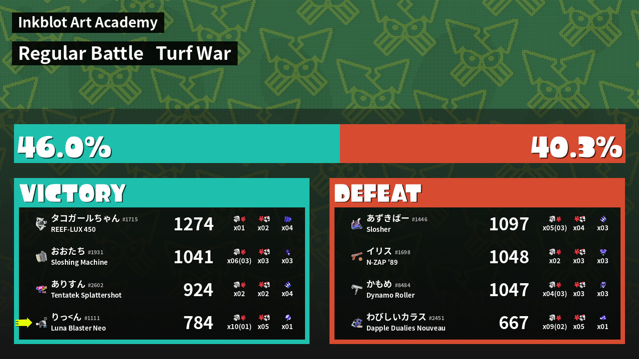 Kills / Deaths | 9 + 1 / 5 > Kill Ratio: 1.80 | ||
