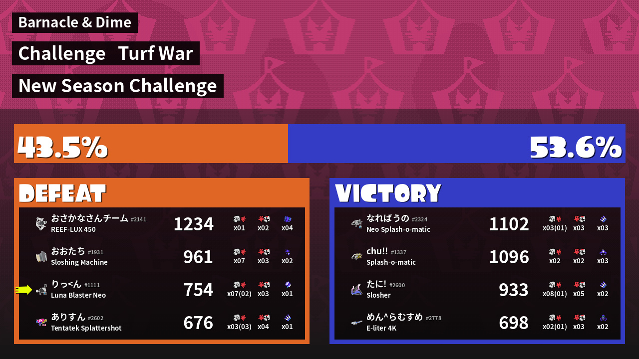 | Mode | Turf War - Challenge | ||