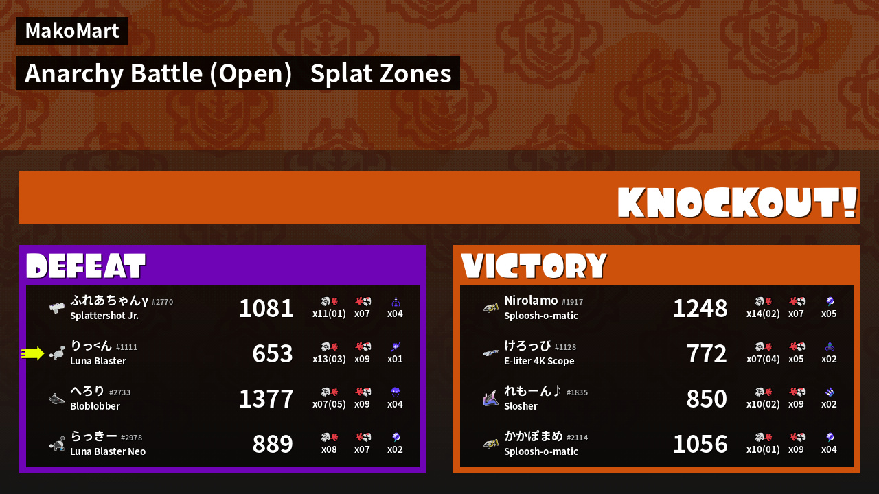 | Mode | Splat Zones - Anarchy Battle (Open) | ||