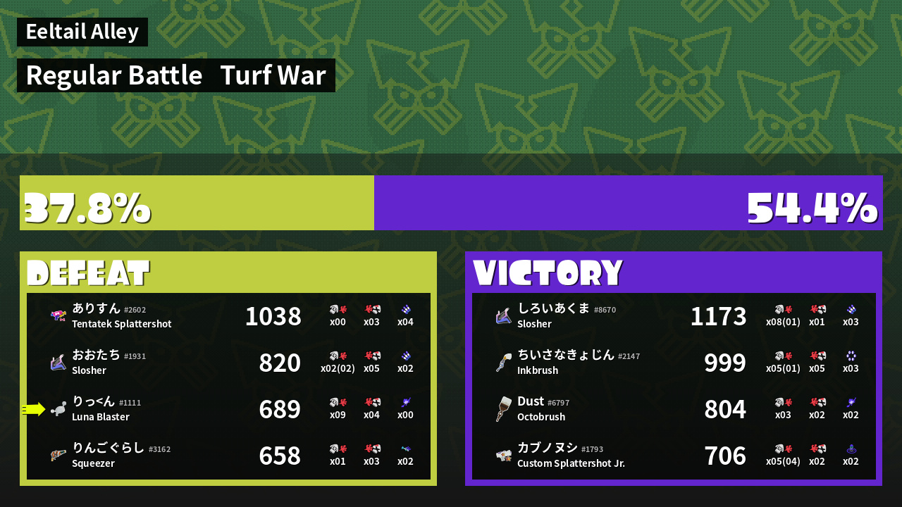| Mode | Turf War - Regular Battle | ||