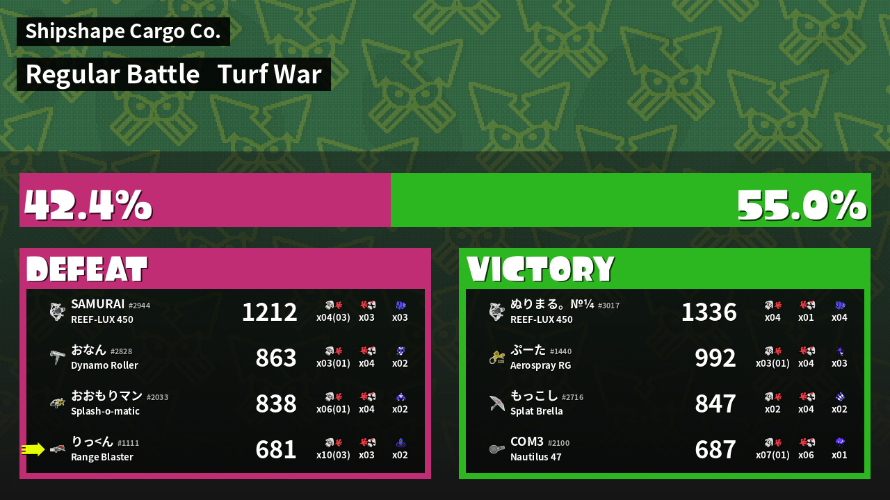 | Mode | Turf War - Regular Battle | ||