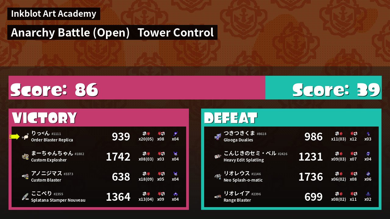 | Mode | Tower Control - Anarchy Battle (Open) | ||
