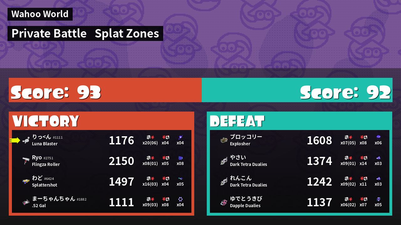 | Medals | #1 Overall Splatter #1 Splat Zone Guard #1 Popular Target | ||