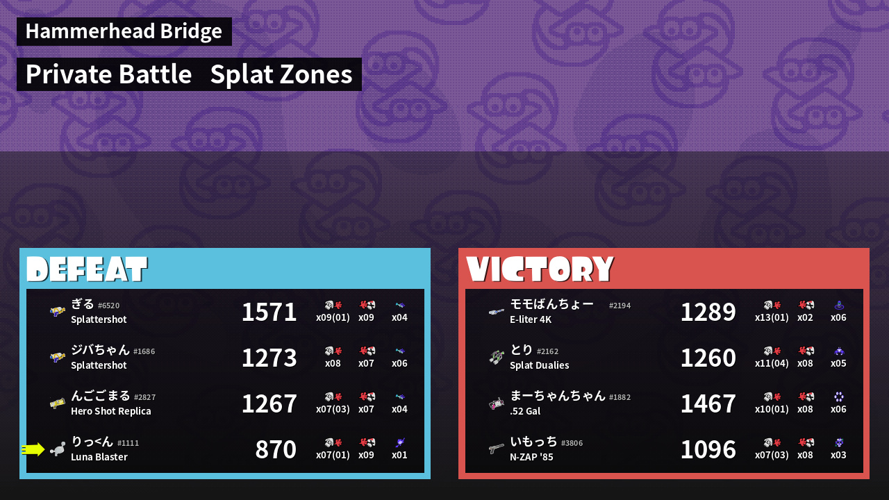 | Medals | #1 Splat Zone Hero #1 Ink Consumer First Splat! | ||