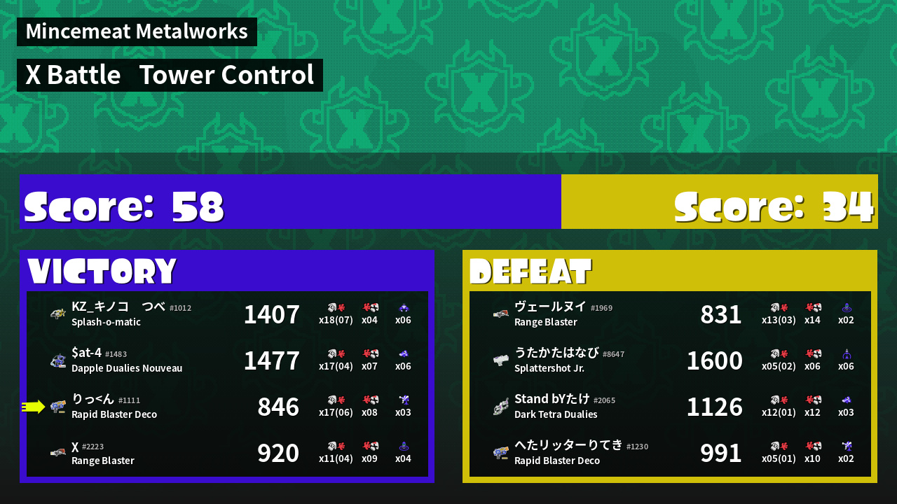 | Mode | Tower Control - X Battle | ||