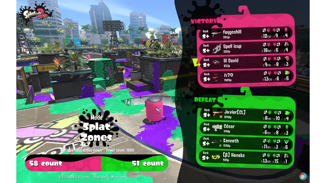 | Name | Weapon | Level | Rank | Inked | k+a/sp | k/d |