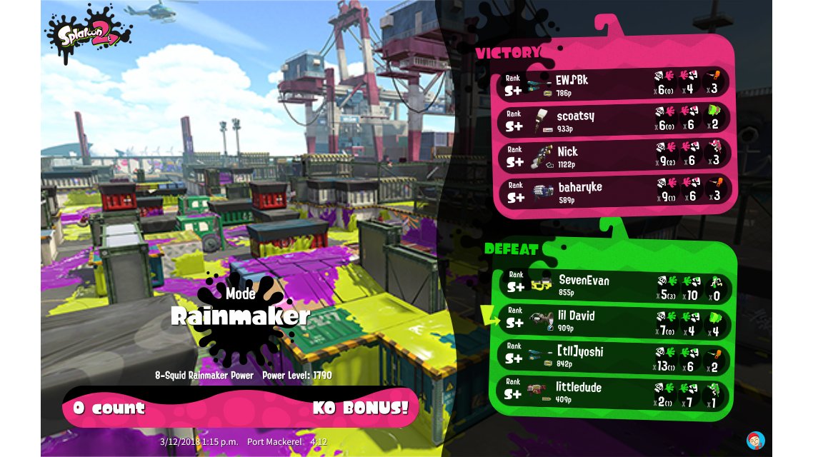 | Name | Weapon | Level | Rank | Inked | k+a/sp | k/d |