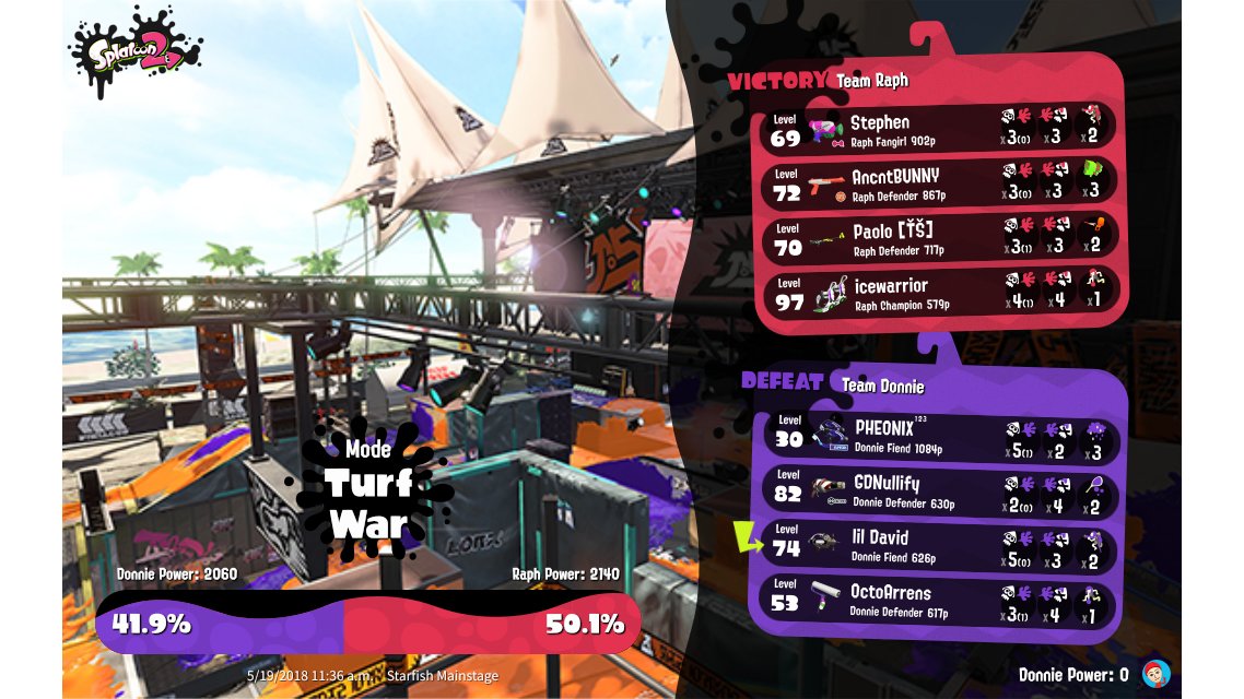 | Mode | Turf War - Splatfest (Solo) | |||||||||||||||||||||||||||||||||||||||||||