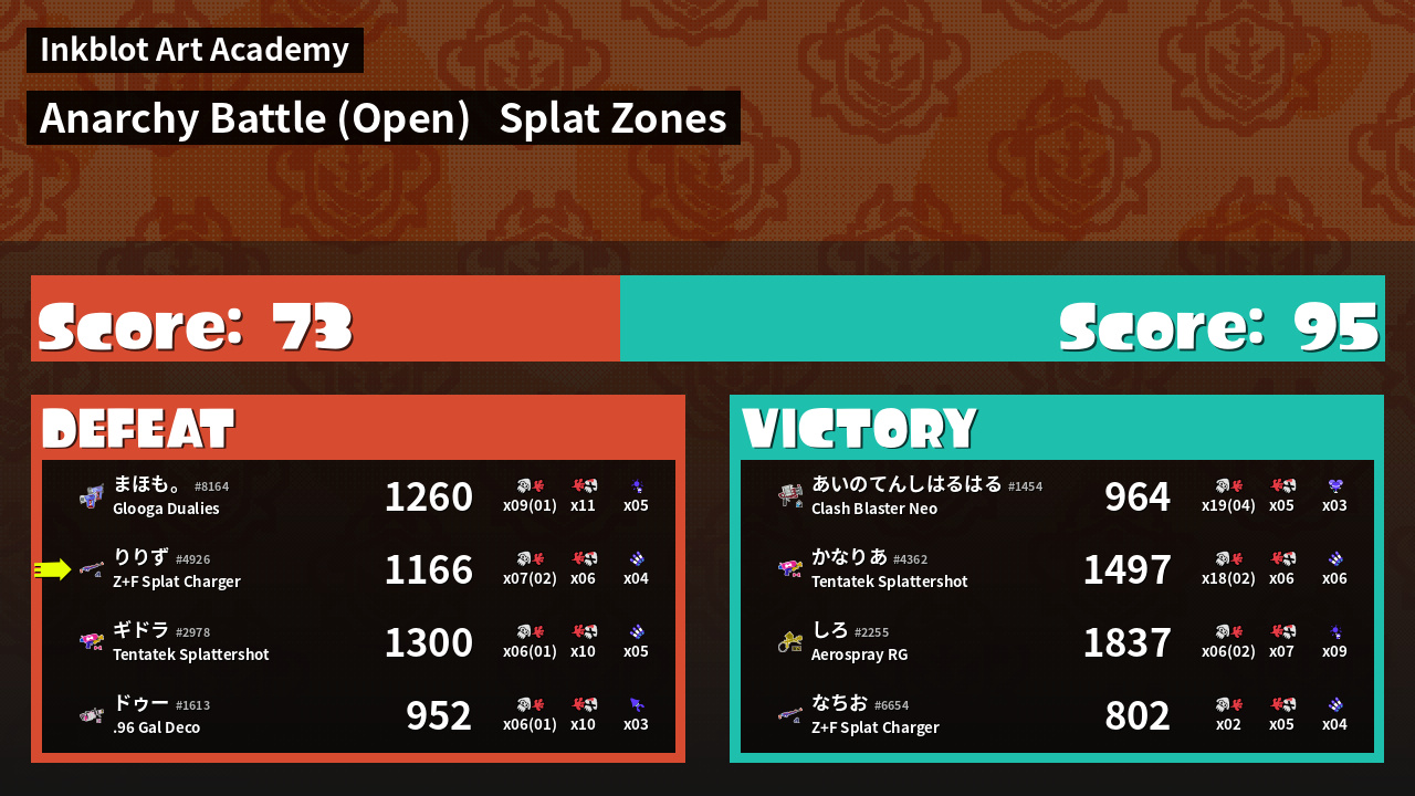 | Mode | Splat Zones - Anarchy Battle (Open) | ||
