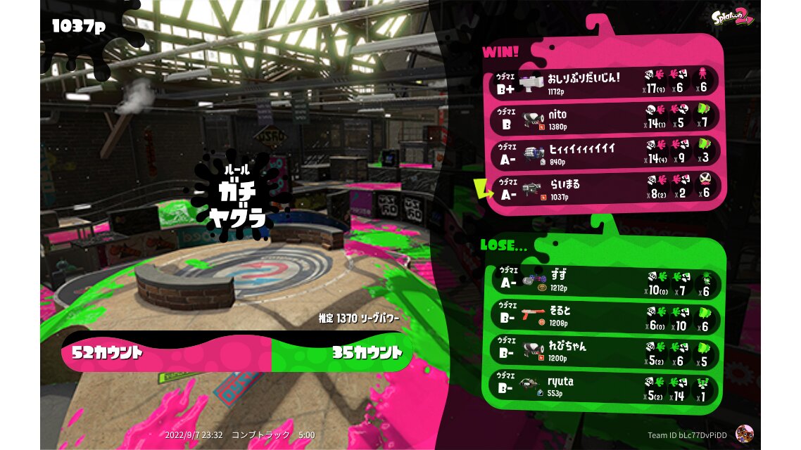 | SplatNet Battle # | 3,507 | ||||||||||||||||||||||||||||||||||||||||