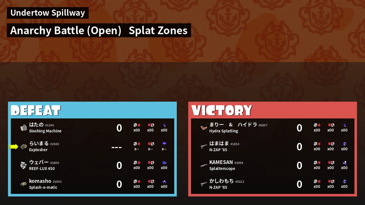 | Mode | Splat Zones - Anarchy Battle (Open) | ||